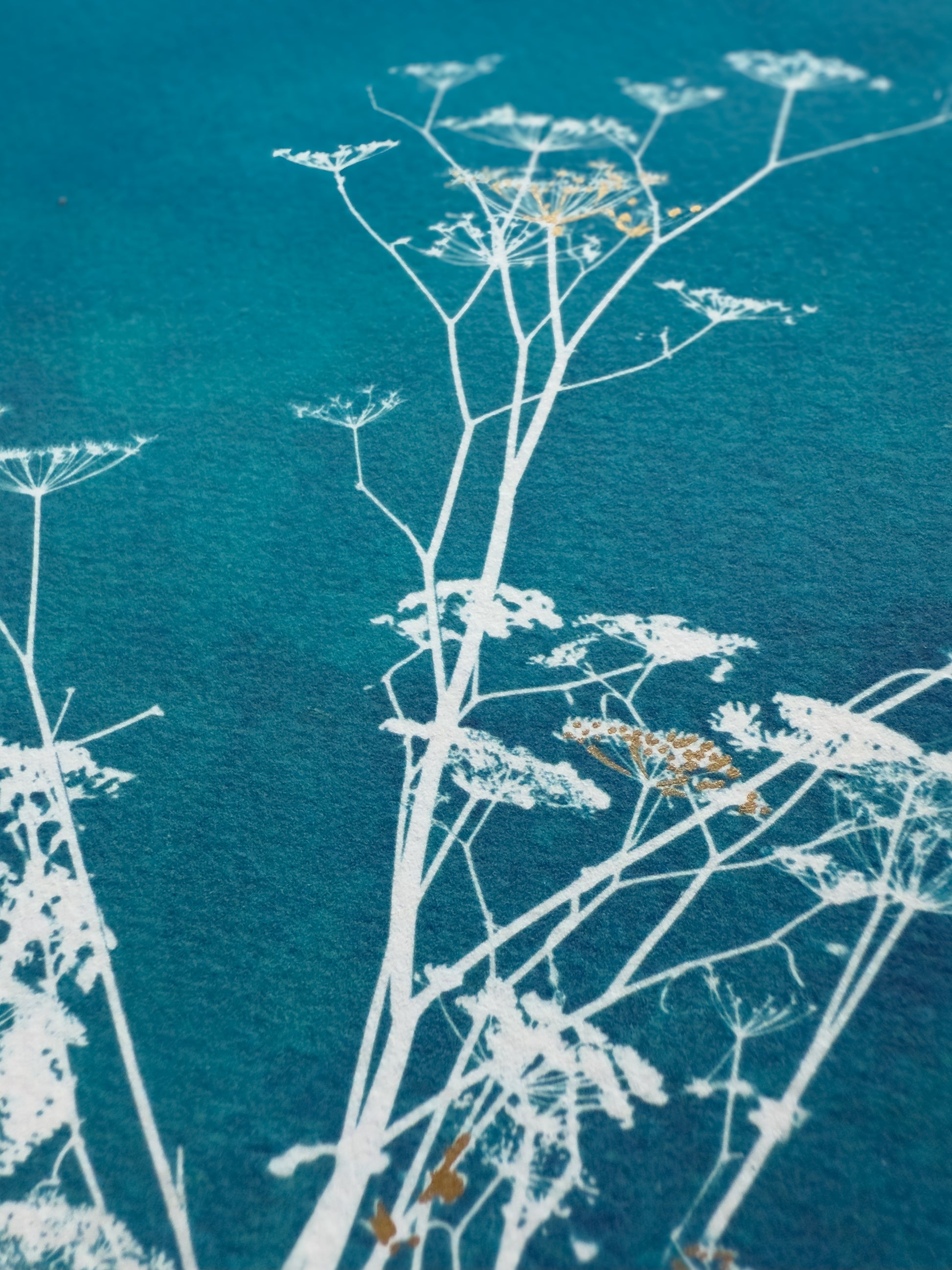 Additional hand-applied genuine 18 carat gold leaf & gold ink accents. Each minimalistic, subtle accent is uniquely placed, making the work entirely one-of-a-kind.