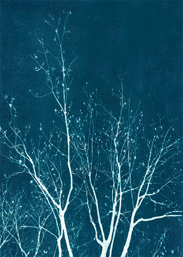 Each box includes a framed botanical cyanotype art print, capturing the quiet beauty of sun-printed tree branches in soft cream & indigo. Printed on Epson cold-press heavy watercolour paper with a creamy white acid-free mat and sustainably sourced solid oak frame with plexiglass cover.