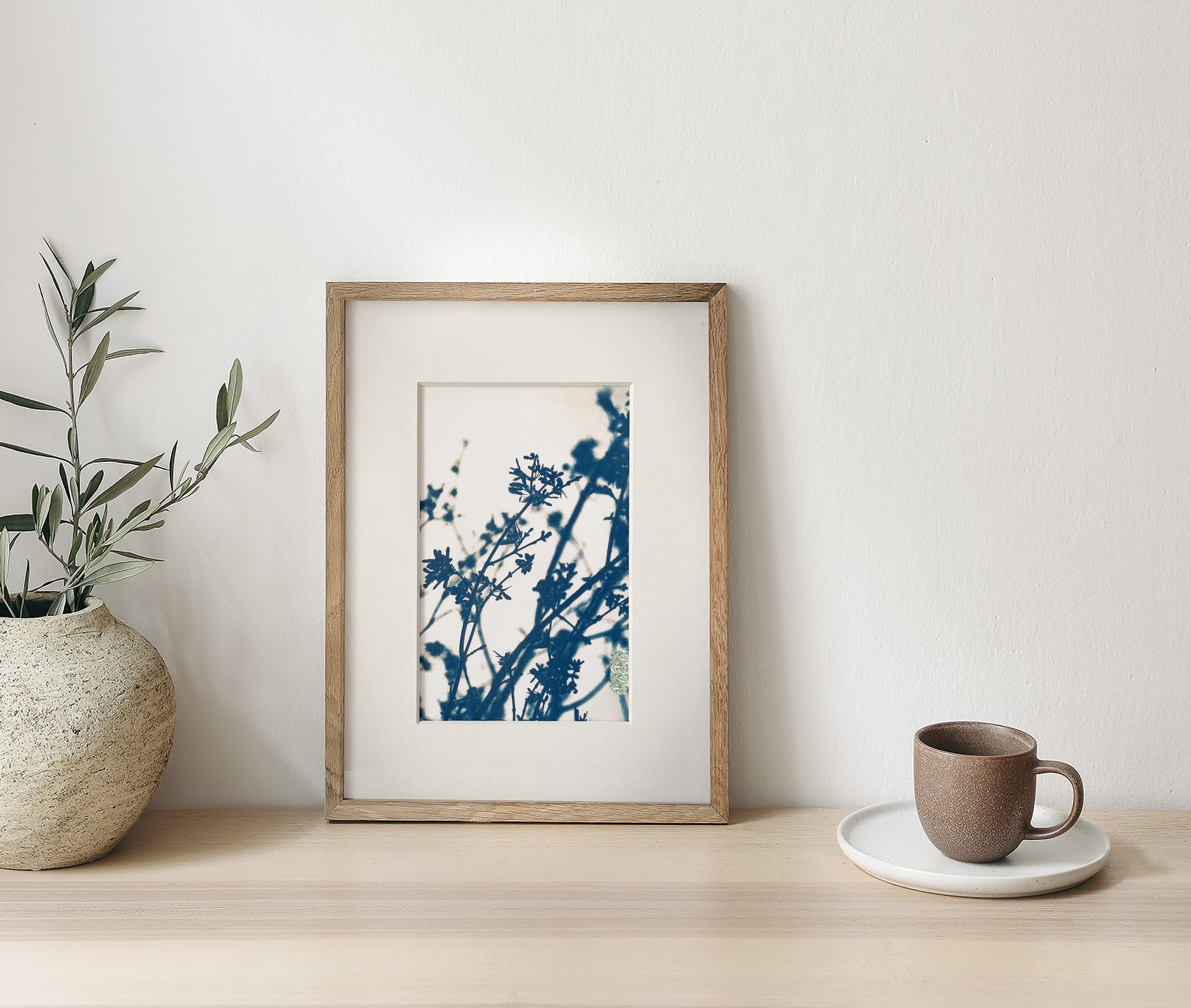 This fine art print is a reproduction of my original cyanotype. Each signed print includes a creamy white acid-free mat, ready to pop into any standard 8 x 10 frame. (Please note frame is NOT included).