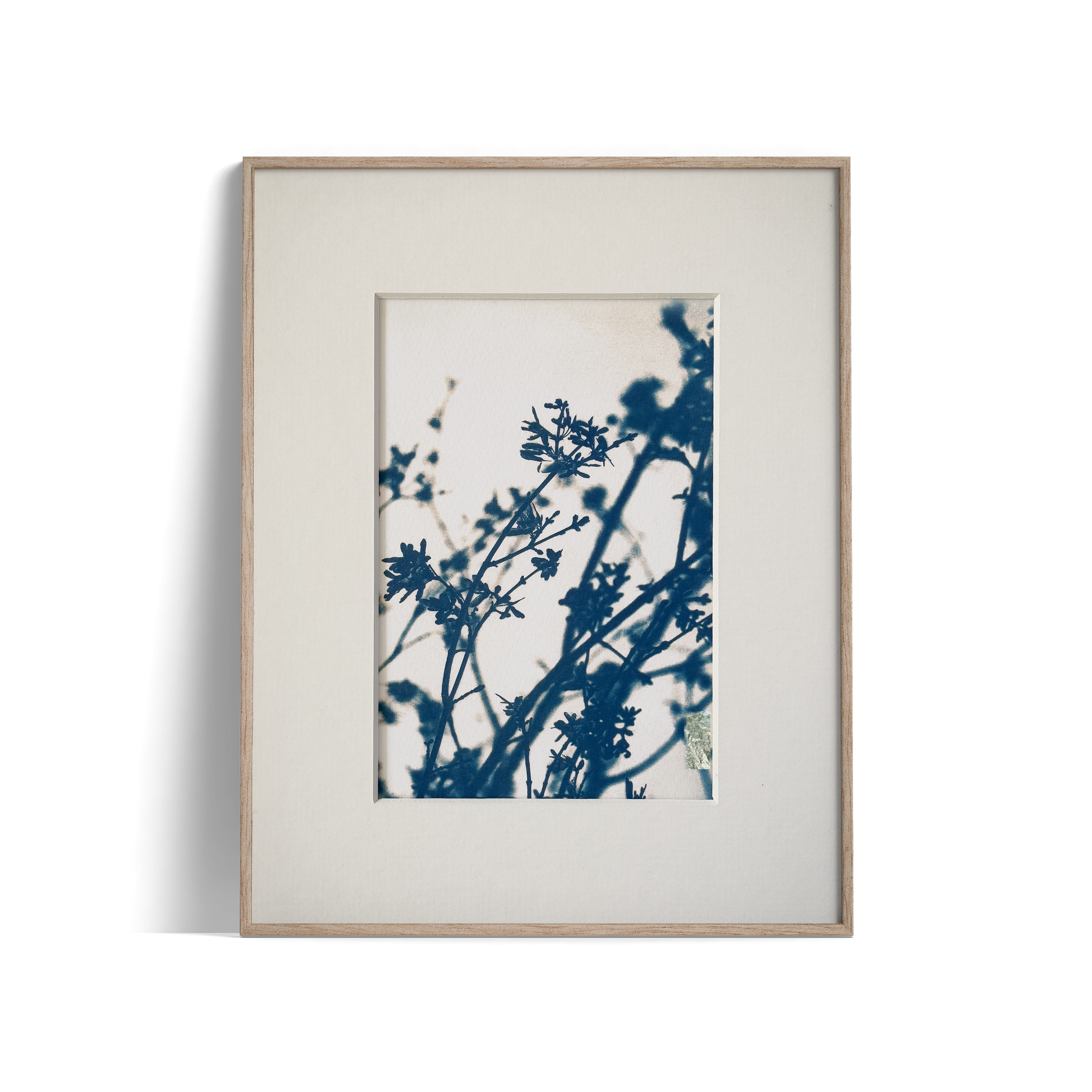The process of making cyanotype prints is unpredictable as each piece reacts differently with the sun. As such, these prints are “perfectly-imperfect” and may include areas of soft blurring or uneven texture intrinsic to the natural print process - honouring the beauty found in imperfection.